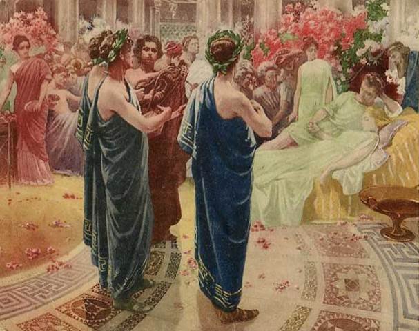 The illustration is an artist’s impression Petronius’s final moments as he died by an elaborate suicide after his fall from grace, in an illustration from Sienkiewicz’s novel, Quo Vadis?